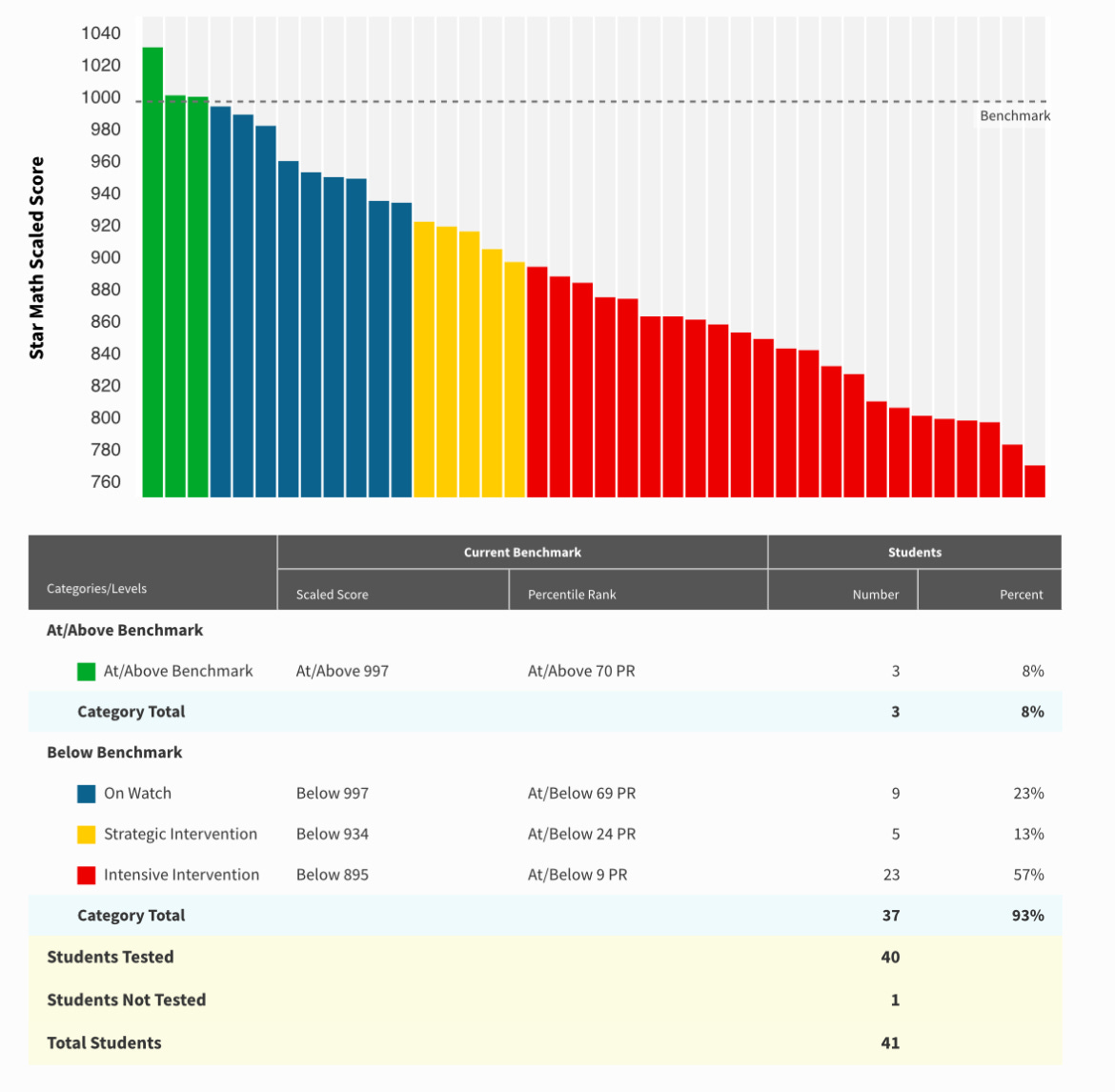 57% of students tested in the Intensive Intervention range on district benchmarks (indicating they were about 2-3 grades behind in math),